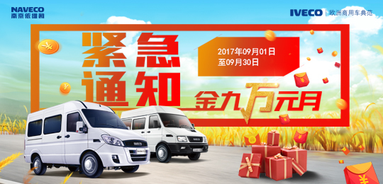 即日起购依维柯明星车型,不仅可以享受享受0利息购车金融服务,更有现金钜惠和超值礼包相赠!