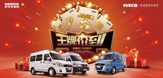 2017年11月1日至11月30日,购买依维柯明星车型,即可坐享现金钜惠,更有多种现金方案祝您购车无忧,还有豪华礼包相赠。悦享驾乘,一路风景!
