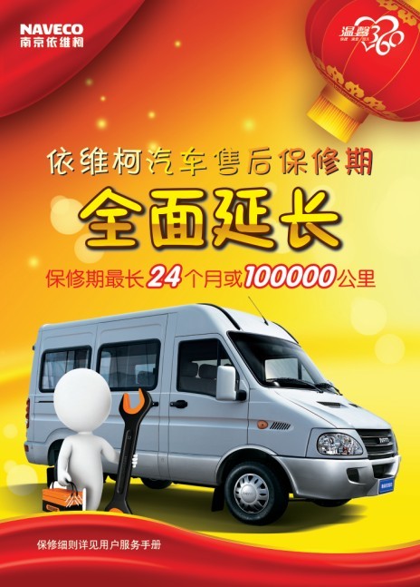 依维柯汽车售后保修期全面延长 为了提升依维柯的市场竞争力和客户满意度,从2013年2月1日起对依维柯产品的质保期限进行了调整,调整方案如下(只针对部分核心部件,其它均低于以下标准):